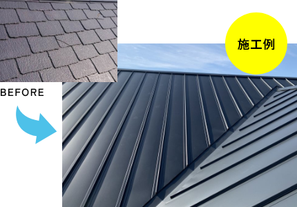 既存の屋根の上に、新しい屋根材をかぶせる工事(リフォーム)です。