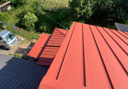ヒビが入って心配だったスレート屋根から、0.5mmと厚めのガルバにリフォーム。