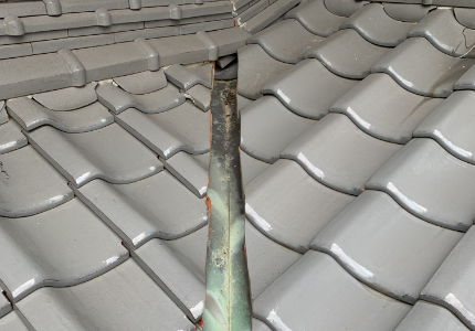 「谷」とは二つの屋根面が交わる所で、大量の雨水が集まり流れることで、雨漏りがおこりやすい部分です。
